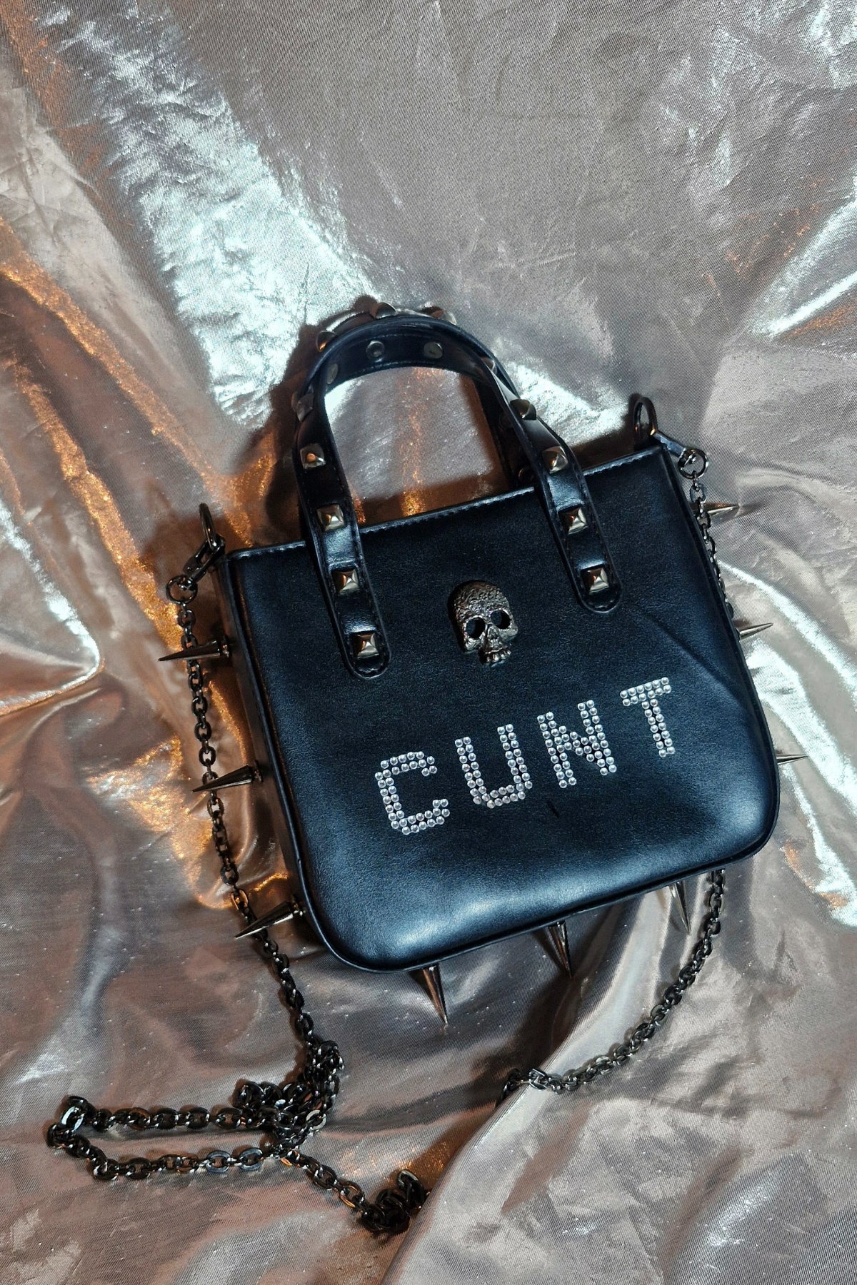 "CUNT" Upcycled Spiked Skull Crossbody Bag